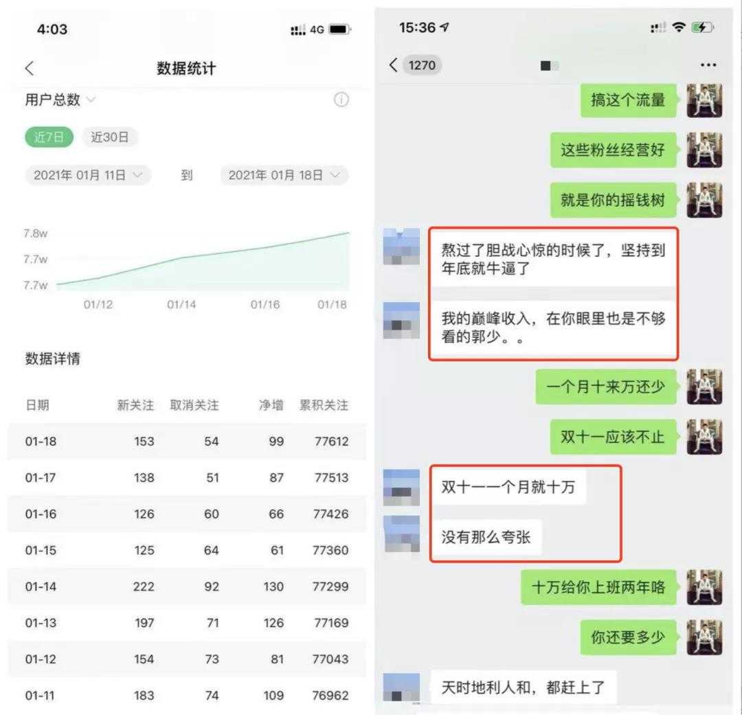 与我们一起操作拦截一个伙伴,目前企业上班每个月5000元,副业跟着我操作公众号拦截引流,通过自己的努力,短短半年时间通过拦截被动引流涨粉7万多,半年副业多赚了五十万元,最高单月收入十万元